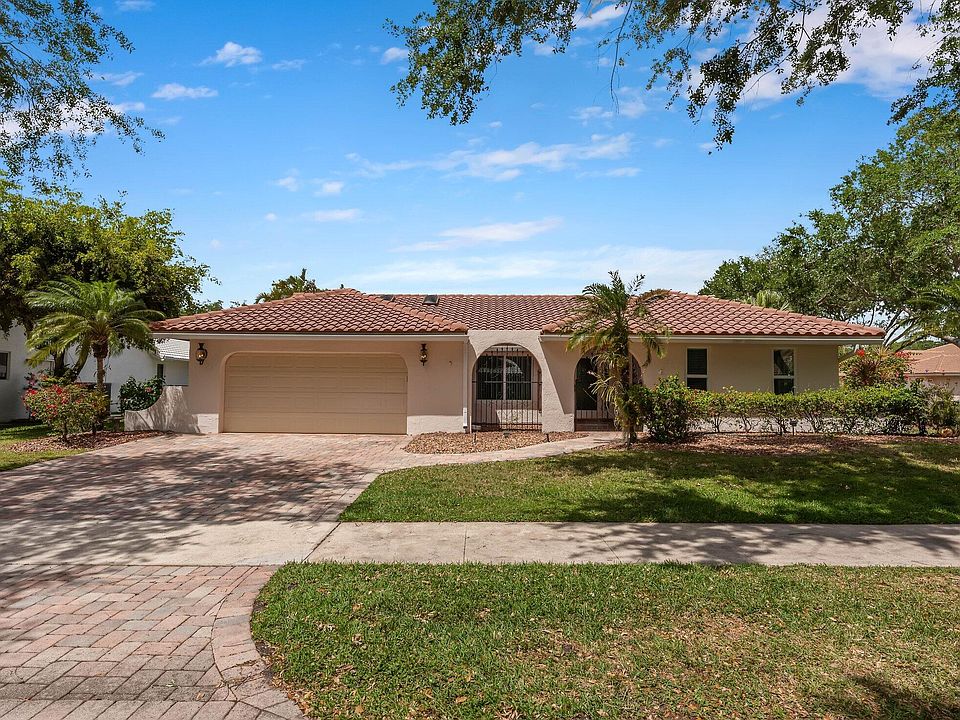 Welcome to your dream home nestled in the picturesque neighborhood of Lakewood Oaks in Boca Raton! This charming single-family residence boasts four spacious bedrooms and two beautifully renovated bathrooms, a family room, separate living room and dining room with skylights, a large kitchen with Pantry and laundry room.Step inside through the front wrought iron entry and open garden into the foyer. You will discover an open concept home with tall ceilings, beautiful Mexican Tile, and a floor plan that can easily accommodate many different living options. The kitchen gleams with stainless steel appliances, a sink overlooking your pool & yard, plus plenty of cabinets, some with glass fronts, granite countertops and breakfast bar area. The pantry with pullouts and the separate laundry room with sink make this for a well thought out functional space! Easy access to the large dining room with skylights is always a plus.