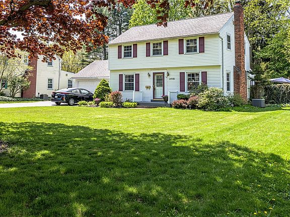 Outstanding Oakcrest Village Colonial boasts all the bells & whistles, ready for Summer in beautiful West Irondequoit! This central location combines three tremendous characteristics: Quality Schantz-built construction, modern updates & resort-like private backyard retreat! Wonderful floor plan saturated w/natural light is apparent upon entering--gorgeous quartz flooring of entry hall is a bellwether for the flexible space that abounds! Formal DR has gleaming Oak hrdwd flrs & wainscoting while the huge formal LR has gleaming Oak hrdwds and sleek slate fireplace w/reclaimed pine mantel! Spectacular OPEN kitchen w/breakfast bar flows into the vast family room & adjoining dining space w/spectacular wall of windows viewing the sparkling Inground pool! Kitchen has granite countertops, SS appliances, LVT flooring & ample cabinet space. Family rm has newly installed carpet, high ceilings, recessed lighting, dual ceiling fans and breathtaking wall of windows inviting you through the sliding glass door to the sprawling pool deck! Stylish dining space has high ceilings, slate accent wall, LVT & sliding glass door to the deck & private yard! Up the staircase is a new wool runner leading to the 2nd floor. The primary bedroom has new carpeting & ample closet space w/ceiling fan. Secondary bedroom also has a ceiling fan and ample closet space, and the third bedroom has gleaming oak hrdwds. The full bathroom is tiled with a newer vanity. Down to the basement you will find and extraordinary flex-space w/brand new carpet & plenty of storage space--office, rec-room, theatre, children's play space! This location is unbeatable: a short walk down Oakview connects the neighborhood to a 2.5-mile nature trail connected to pristine Durand Eastman Park! Walking distance to Town Hall/Public Library which play host to popular parades, festivals & events. Minutes to Ontario Lake Beach, Schools, I-Square, Seneca Park Zoo, Durand Golf Course, Sea Breeze as well as outstanding shops, eateries, breweries and the unique culture for which this time-honored town is known! Ft/2 as per official measure, partially finished basement adds 414 ft/2 not included in total. Delayed Neg. begin 5/20 @2p.m.