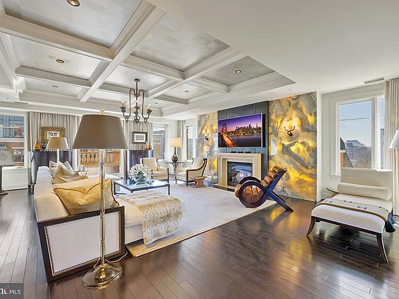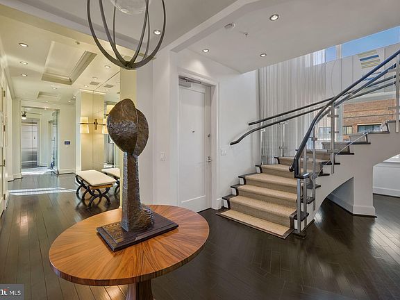 Located in the heart of Washington’s glitzy West End, 2501 Penn is a boutique luxury condominium emulating those from pre-war times lining New York’s Fifth Avenue. Penthouse 2B sits at the apex of the handful of luxury units, boasting an incredible 4,500 square feet of style, elegance, and a hint of historical charm spread across two ethereal levels. More akin to Manhattan’s so-called ‘mansions in the sky,’ one steps off a private elevator into a gracious foyer anchored by a stunning glass, metal, and wood staircase framed by a double height window wall. Ebonized hardwood floors flow throughout, while four exposures introduce natural light from all sides throughout the day, highlighting the world-class interior design curated by internationally renowned interior designer Barry Dixon. The main level contains all of the residence’s public and living areas, including the formal living room itself, with a stunning backlit onyx wall, gas fireplace, coffered ceiling, and private terrace. A formal dining room and proper, paneled library with custom built-ins each boast their own fireplace, and serve as a segway into the home’s informal areas. The family room is spacious yet intimate, featuring a second private terrace framed with original 19th century balusters and accessed through double glass doors. Meanwhile, the kitchen rivals that of any luxury detached home, with its oversized center island, carrara marble countertops, 48-inch Thermador gas range, and separate column refrigerator/freezer. At the top of the staircase, a conveniently located upper level laundry room introduces three spacious bedroom suites. The primary suite boasts access to a terrace which spans the entire length of the upper level, offering stunning views, in addition to a separate sitting area. Twin walk-in dressing rooms as well as a sumptuous limestone bath with twin vanities, jetted tub, and glass walk-in shower creates a home away from home. The two additional bedrooms are ample in scale and feature premium amenities such as ensuite baths, walk-in closets, and terrace access. A proper smart home, conveniences such as intelligent climate control, built-in audio, and motorized shades combine with rare city amenities such as 3-car garage parking, private storage, and a 24-hour front desk concierge to create a distinctive offering. Steps away from Georgetown, Foggy Bottom, and the waterfront, 2501 Penn is situated mere minutes from the city’s finest shopping, dining, and entertainment, making Penthouse 2B a rare blend of space, location, and luxury for the most discerning buyer.