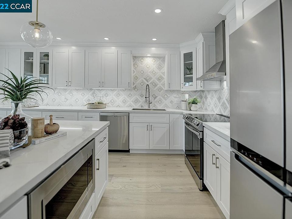 Completely remodeled and fully expanded Sonoma model. Elegant finishes throughout, with over 200 additional square feet. Wide plank engineered hardwood floors. Smooth quartz counters and marble backsplash. All new cabinetry with large pull-out drawers. More than twice the standard storage space. Recessed lighting in every room. All new stainless appliances. Top of the line laundry set up in separate closet. 2 bathrooms beautifully remodeled bathrooms. The primary bathroom has dual sinks and a custom tiled shower with glass surround. New dual pane windows. Everything has been updated in this brand new remodel. Designer window treatments and so much more. Must see in person!