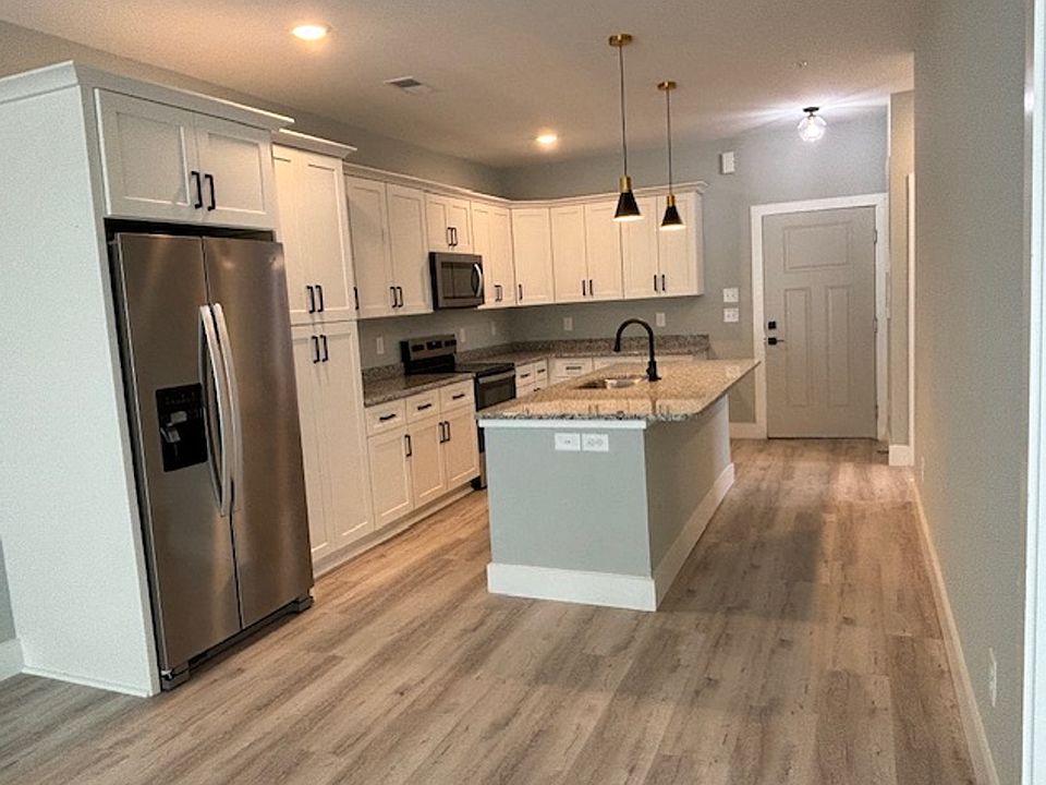 Pine Village is our brand-new luxury apartment homes nestled in an intimate 21-unit 1-and 3-bedroom unit community that offers every high-end finish without the static of a large typical apartment community. From the custom all real wood cabinetry to the Whirlpool stainless steel appliances to the granite counter tops and huge islands this kitchen feels like what you would find in a single-family home. It boasts an open floor plan with 9-foot ceilings, high end trim and door hardware, ceiling fans with lights in all bedrooms and living room, walk in closets, laundry room, oversized windows with plantation blinds and sheer curtains in living room. No detail has been missed in this community from available fiber internet to smart panel wiring in every unit...come see for yourself what top end luxury, in an intimate community and at an affordable price feels like!
