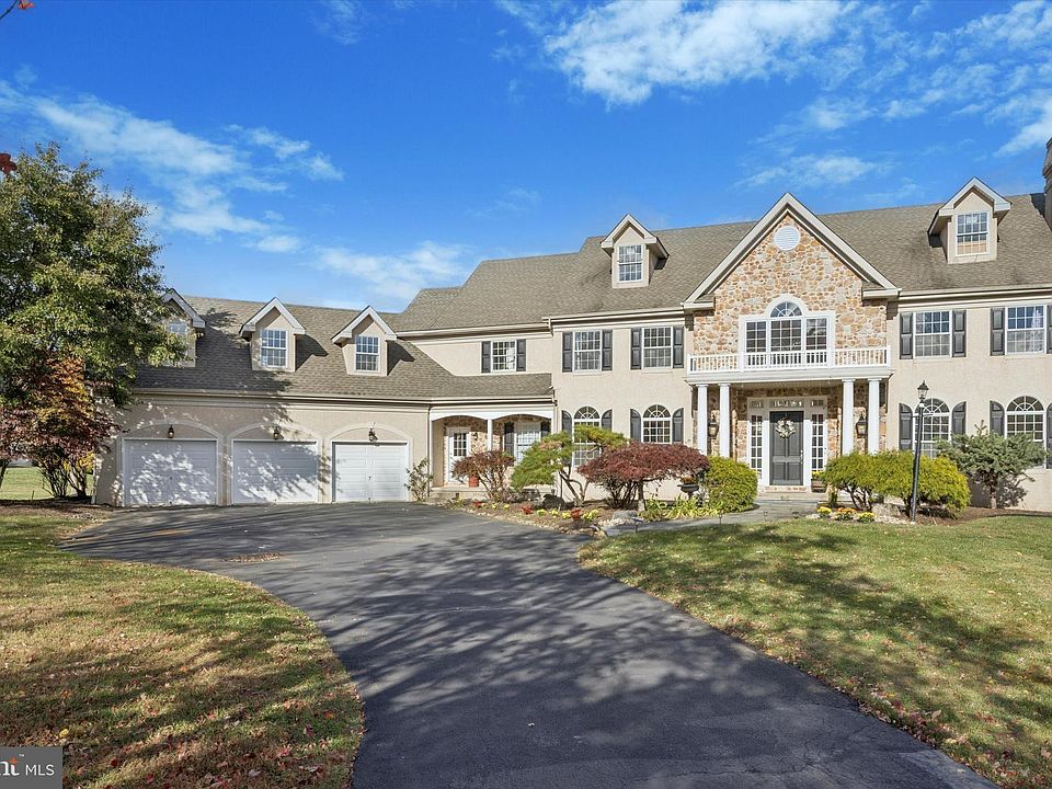 Open Houses scheduled on Nov 14 (Fri) 4pm - 7pm, Nov 15 (Sat) 12pm - 2pm and Nov 16 (Sun) 12pm - 2pm. Check out the video of this amazing home. Welcome to 2501 Pondview Drive, a distinguished former model home by renowned Sparango Builders, nestled in the sought-after Worcester Township. Perfectly situated just a stone’s throw from Blue Bell Country Club, Normandy Farm, and Center Square Shopping Center, this location offers both prestige and convenience. Set on a tree-lined cul-de-sac with only seven custom residences, this Helmsly Model showcases over 5,700+ square feet of elegant living space on a 1.87-acre flat corner lot. The home features 5 spacious bedrooms, 3 full baths, 2 half baths, a 3-car garage, and a large unfinished basement ready for your personal touch. Step inside this exceptional residence with beautifully finished living space, designed for comfort, sophistication, and everyday elegance. The grand two-story foyer, featuring tiled floors and a sweeping curved staircase, makes a stunning first impression. To the right, the bright and inviting living room showcases four arched windows that fill the space with natural light and a cozy gas fireplace that adds warmth and charm. French doors open to a spacious study overlooking the picturesque backyard—perfect for working from home or relaxing with a good book. To the left of the foyer, the formal dining room, framed by elegant arched windows, provides an ideal setting for hosting family gatherings and dinner parties. The open-concept family room serves as the heart of the home, featuring a dramatic floor-to-ceiling stone fireplace and seamless flow into the gourmet kitchen and breakfast area. The kitchen is a chef’s dream, highlighted by rich granite countertops, an expansive island with a prep sink, double wall ovens, and custom cabinetry offering generous storage. A writing nook provides added functionality, while large windows above the sink frame beautiful views of the backyard. The breakfast area opens to an expansive deck—ideal for outdoor entertaining and quiet mornings alike. Completing the main level are two powder rooms, a convenient back staircase, a secondary front entry, a large laundry room, and access to the three-car garage. Upstairs, the grand primary suite is a private retreat featuring a tray ceiling, a luxurious walk-in closet with custom organization and a private balcony, and a spa-inspired ensuite bath complete with a jetted soaking tub, walk-in shower, and dual vanities. Four additional spacious bedrooms include two sets of Jack-and-Jill bathrooms, offering comfort and convenience for family and guests. A 16’ x 32’ bonus room above the garage provides flexible space that can serve as a fifth bedroom, recreation room, media room, or private study. A pull-down staircase leads to the floored attic, offering abundant storage or potential for future finished living space. The lower level features a 2,100+ sq. ft. unfinished basement—ready to be transformed into the ultimate entertainment area, gym, or guest suite. The expansive, flat backyard is a rare find—offering endless possibilities to create your own private oasis. There’s ample space for a future pool, landscaped gardens, play area, or an exceptional outdoor entertaining space. Located just minutes from the heart of Blue Bell, this home offers the perfect blend of privacy, convenience and luxury in one of the area’s most desirable communities. Experience the exceptional lifestyle that awaits at 2501 Pond View Dr.