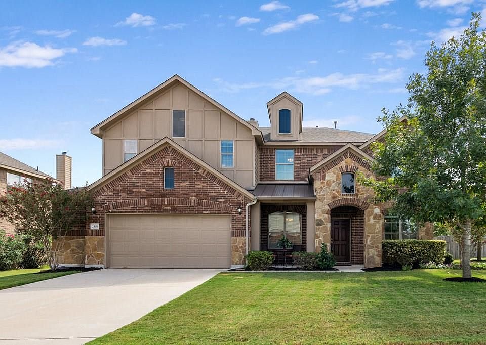 Large corner lot, beautifully landscaped w/full irrigation system. Gorgeous, upgraded hardwood floors & recently installed carpet. Open kitchen w/ample storage & counter space. Fireplace in family room. Spacious master suite, featuring sitting area & private balcony w/beautiful sunrise & sunset views. Wired for surround sound in family & game rooms w/speakers on over-sized, covered back porch. Perfect for entertaining! Newly installed water heater. 3 car garage w/extra wide tandem & 5' ext.