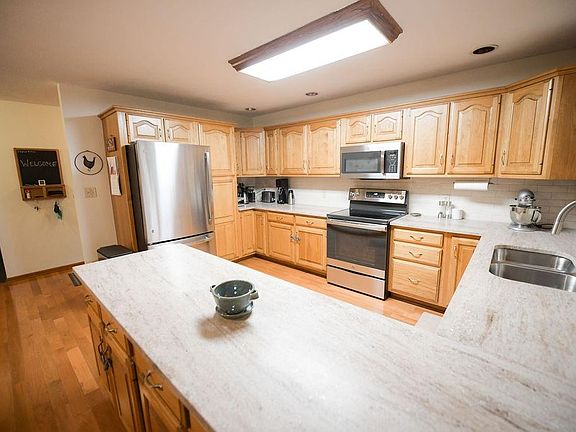 Take a look at this impeccably maintained ranch style home! Nestled on a knoll the paved driveway leads you back where you can take in the gorgeous views This home offers 3 bdrms 2 baths 3 season sunroom & more After entering mudroom you're lead to updated kitchen & dining area by beautiful hardwood floors Large sunroom surrounded by windows overlook the pond & yard Cozy up to gas-log fireplace in living room or unwind privately in the master bedroom w/ensuite Remaining space is rounded out w/2 bdrms full bath & laundry Once outside you'll see the possibilities on this property Suitable for livestock w/flat & gently rolling pastures 28x48 pole barn & 24x50 detached 4 car garage Good location for commuters who are looking for peace & quiet