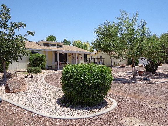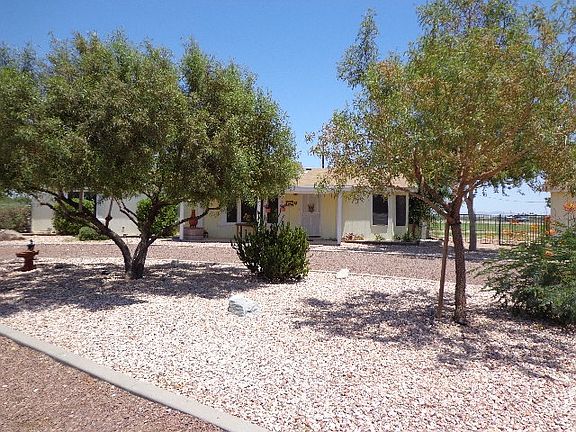 1+ acres with RV gate and RV parking is allowed. It also includes a 1,000 sq ft detached garage which can hold up to 4 vehicles along with an extra 300 sq ft of storage. Home is upgraded with 2x6 construction, dual pane windows, sunscreens, spacious kitchen with island, upgraded cabinets, great room and a formal dining area that could be used as a family room. The home even comes with a refrigerator, washer and dryer. Extra large master bedroom. Shower with garden tub in master bath and large walk in closet. Guest bedroom has extended 8 ft closet. Great laundry room with cabinets, counter top space, a storage closet and shelving. Generously sized covered front and back patios offering plenty of space for entertaining.