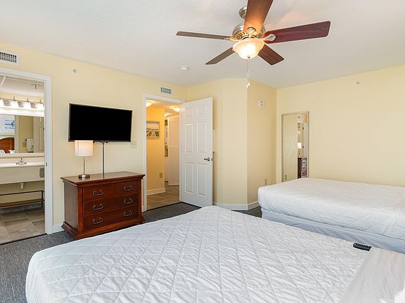 Oceanfront 2 bedroom /2 bath  spacious end unit with breathtaking views of the beach.  Fully furnished!  Features balconies with expansive views -off living room, and both bedrooms.    The living room and master bedroom balconies are oceanfront and the guest bedroom balcony is oceanview. This is a hard-to- find feature.  There are full walls of window/sliding glass doors which allow the views to pour into the unit.  Sleeps8-Master bedroom has a king , the guest room has two queens and the living room has a queen sleeper sofa.   Unit has an in-room safe.. This unit is bright and airy with neutral colors  and lots of sunlight making the unit feel open and spacious. New carpeting in the bedrooms and new tile throughout the other living areas.  Kitchen is fully equipped and there is a washer/dryer  in the unit. The master bathroom has a large double vanity and soaking tub/shower.  Storage room access  is outside the unit.  When it is time to relax and enjoy the views of the white sandy beaches, the balconies or the oceanfront lawn will be the perfect choice.  Great onsite amenities including in/outdoor pools, lazy river, hot tub and fitness center.   Free onsite covered parking.  Close to the airport, state parks, restaurants and entertainment.  This unit would be perfect for a vacation home or potential investment opportunity.  Make your appointment to see today.