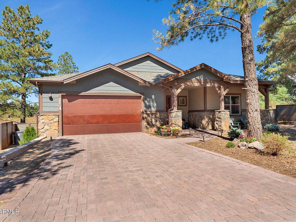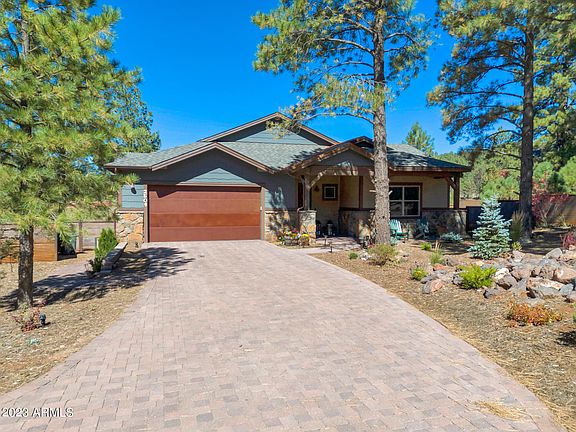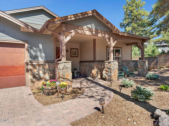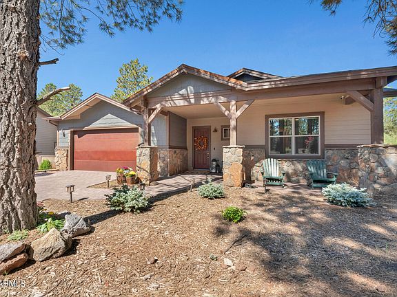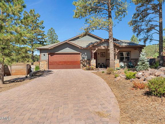 Gorgeous single-level home in the desirable Timber Sky neighborhood! Sitting on over 1/3 acre, this 4 bedroom, 2.75 bathroom luxury home has it all. Inside you'll find a split floor plan, a chef's kitchen containing an oversized kitchen island, extended walk-in pantry, two ovens w/ convection microwave, quartz countertops, epoxy garage floor, vaulted ceilings with 8' doors, fireplace with elegant tile surround and wood mantel, and so much more! The exterior is beautifully landscaped and maintained. Sit out on the back covered patio and enjoy panoramic forest views. Lived in since only 2022, and conveniently located to downtown Flagstaff, Snowbowl, the Flagstaff Urban Trails System, and more, this is a home you'll want to see soon!