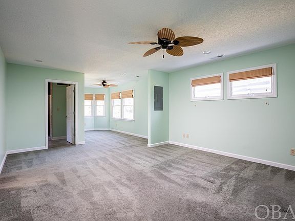 Looking for a wonderful home in a nice neighborhood, then be sure to tour this corner lot property in Nags Head Acres, centrally located at 10.5 Mile Post. Nearby shopping center complete with an anchor grocery store along with specialty shops such as coffee, pizza, subs, gift, jewelry, and a full service bank. The YMCA is just a few blocks to the south. BEACH ACCESS directly east of the subdivision entrance with a manually controlled stop light crossing US 158 bypass. The awesome 595' square foot PRIMARY SUITE has a 10' X 7.5' WALK IN CLOSET with custom shelving and clothes hanging bars. Two side by side smaller closets are also in place for extra storage. In the bathroom, a TRIANGULAR BATH TUB for soaking along with a STEP IN TILED SHOWER, beautiful vanities and cabinets. In the primary southeast corner, windows allow sunlight through the east, and south walls. When you see this suite, you're going to want it! Next is two bedrooms that share a hall bathroom with tub/shower. Leaving the bedrooms you're now in the cathedral ceiling living area with a three panel slider door for plenty of natural lighting on sunny days. Adorning the living area is a wood burning FIREPLACE. Just off the living area, you enter a 15' X 12' DEN for separate entertaining. From the den through the foyer, the DINING ROOM is accessed and leads to the kitchen's updated countertops with lots of beautiful cabinets all around the room. Next to the kitchen is a 5' X 11' PANTRY with more matching floor to ceiling cabinets. Beside this area is a dedicated LAUNDRY ROOM which measures 8' X 10' with FRONT LOADING WASHER/DRYER with a folding table with drawers for more storage. Plus there's ample space to put a second refrigerator and freezer in the room. Going upstairs, you'll find a FROG multi-use room for any number of reasons, use your imagination. The entry door to the attached garage where a 1 car parking space and room to store tools and fishing gear. The corner lot yard is nicely landscaped with indigenous plants and trees and has a WELL/SPRINKLER system in place. Two large Live Oaks native to the grounds, one towers over the driveway shading your cars from the hot summer sun. The roof was replaced recently with the extra strengthening FORTIFIED ROOF SYSTEM. The front porch is recessed on three sides that a minor modification could be screening the front openings for outside dining or more privacy. You'll notice the interior has been freshly painted, it looks great. It's vacant, come see!