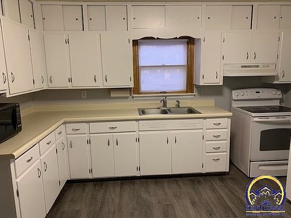 Super cute starter house on large fenced lot. The updated kitchen is every buyers dream kitchen with stove and refrigerator included. Freshly painted and brand new flooring. Newer vinyl siding, roof & AC. Oversized garage with workbench. Close to Washburn University.
