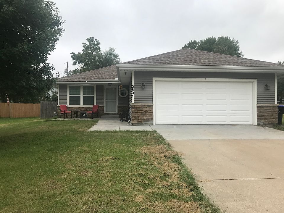 This is a 3 bedroom 1 1/2 bathroom ranch that was newly renovated in 2016. It is located on a corner lot with a fenced in backyard. It has a large outdoor shed for storage. It has a wonderful work area in the garage. It has a unfinished basement with a ton of space. This house is located in the Auburn-Washburn school district. Tenant is responsible for electric, gas, and water. Pets are considered