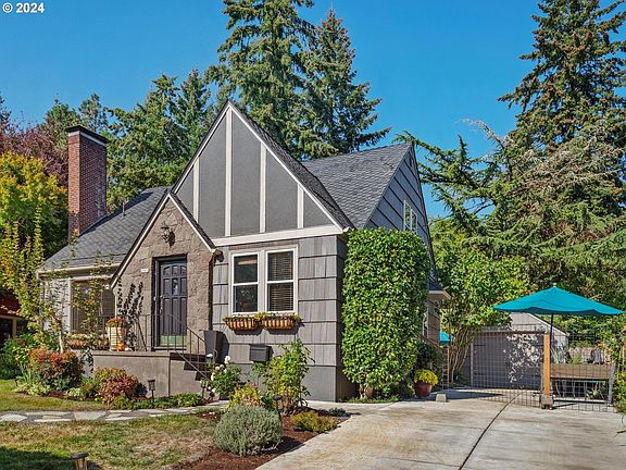 Discover your dream home in the heart of Multnomah Village, Portland! This stunning English Tudor-style residence, built in 1939, offers the perfect blend of classic charm and modern amenities. With 3 spacious bedrooms and 2 beautifully remodeled bathrooms, this 2,651 square foot home sits on a coveted corner lot with a generous .26 acres and a long driveway. Enjoy a delightful 8-minute stroll to an array of delectable restaurants, coffee shops, and vibrant food carts. Step inside to find refinished hardwood floors and a meticulously remodeled kitchen featuring a farmhouse sink, stainless steel appliances, and a vintage restored fan. The formal dining area, complete with a swing door, flows seamlessly into the living room adorned with a large picture window and a cozy gas fireplace. The primary suite is a serene retreat, boasting a walk-in closet and a luxurious ensuite bath remodeled in 2023, featuring dual sinks, a walk-in shower, and a soaking tub. The lower level is a perfect entertainment escape, offering a cozy gas fireplace, a stylish bar, and ample storage, including a workshop. Step outside to your private oasis, featuring a new outdoor vaulted pavilion with mood lighting and radiant heating—ideal for year-round gatherings. Don’t miss this one... open Saturday 12-2 & Sunday 11-1. Please be sure to view full detailed upgrade list including a newer 50 year roof with warranty.Fun Fact - SW Troy Street is scheduled to be walking / biking street later this year. https://www.portland.gov/transportation/pbot-projects/construction/sw-troy-neighborhood-greenway