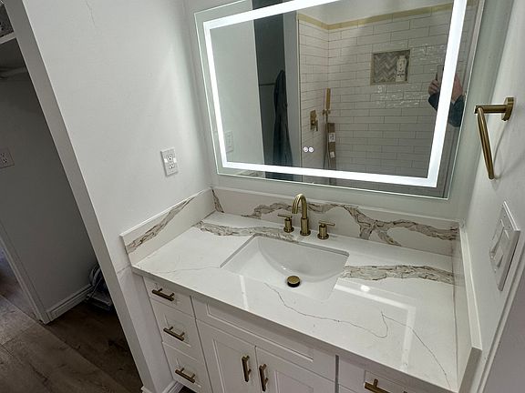 Fenced private yardLuxurious patioFull size tile showerQuartz countertopsLed lightingMatte flat drywallOutdoor string lights
