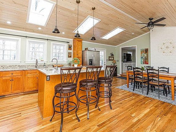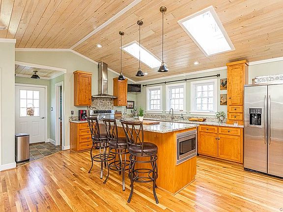Gorgeous 3 bedroom 2 1/2 bath rancher with a 50x40 three car detached garage/shop & an awesome "she shed" sitting on almost 10 acres. High speed Comcast internet available! All new/refinished hardwood floors! Modern kitchen addition features hardwood floors, granite counter tops, huge island with pendant lighting, cathedral ceiling with skylights, smooth top range, built-in microwave & stainless steel fridge & huge dining area. The family room has a cozy stone fireplace, skylights, hardwood floors & ceiling fan. The home office has built-in desk, bay window, cabinets & shelving. The primary bedroom features hardwood floors, a big WIC as well as another closet and a remodeled ceramic bath. Two more bedrooms & another full bath round out this one level living gem! Outdoor living areas include a 24X13 deck, a 14X28 patio and another 25X28 patio. The fully insulated shop/garage has its own heat pump, 3 auto openers, two 10' and one 10' 4" door, built-in cabinetry, work benches, and 6" concrete floor. You'll love the insulated 28X12 she shed with electricity, window a/c and a 8X12 deck of its own. Perfect for crafts or hobbies! 2 carports also convey. Crawl space encapsulated by BDry.