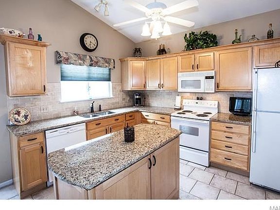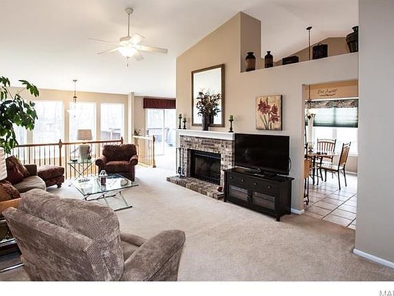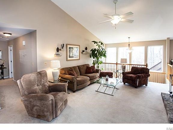 Stunning, 3 bdrm, 2 bath, atrium ranch home with an awesome view of the lake! As you enter your home you are greeted by an open floor plan, full wall of windows and an open staircase leading to the lower level. Let your mind wander as your eye catches the beautiful 17x15 cedar deck off the breakfast room overlooking the lake and enjoy the peaceful sounds of the fountain, perfect for enjoying your morning coffee or entertaining. The spacious kitchen offers custom cabinets with crown molding, granite countertops, tile backsplash, and an island. The greatroom has a vaulted ceiling, wood burning fireplace and another great view of the lake. The master bedroom suite includes a luxury bathroom with a separate shower a tub. The lower level is waiting to be finishedâ¦there is a rough-in for a 2nd fireplace and a rough-in for a full bath. This gorgeous home is only a few minutes from I-44 and Shaws Nature Reserve.
