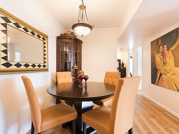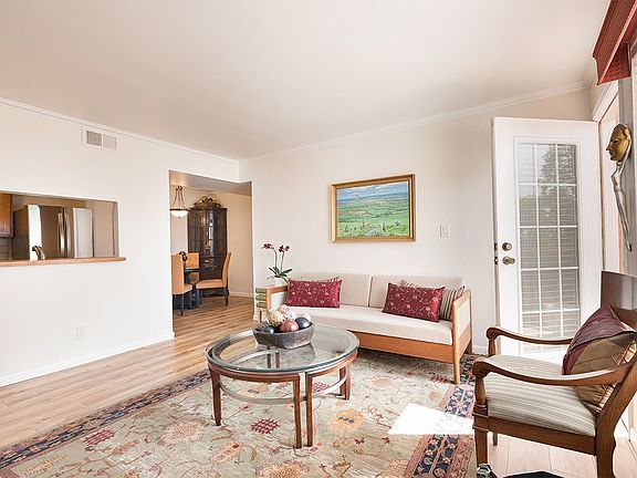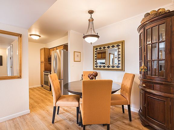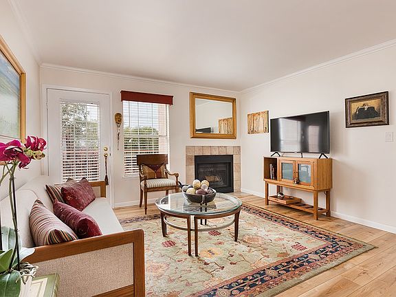 This exquisitely upgraded second-floor, two-bedroom Condo radiates warmth and charm. Gorgeous, honey-colored wood laminate flooring flows through every room accentuating the home's wonderful Southwestern light. Imagine evenings by the wood-burning fireplace or greeting the day on your tranquil balcony that overlooks a seasonally-flowering plum. Enjoy meal prep in a kitchen with new, stainless LG appliances. The meticulous, design-savvy owner repainted the home in a handsome, neutral palette and re-envisioned the dated, popcorn-textured ceilings with an elegant coat of plaster. Even the electrical outlets are adorned with new Lutron plugs and switches. Centrally located near shopping, parks and walking trails. Community amenities include an outdoor pool and hot tub, a sauna, gym, clubhouse with library and attractively landscaped grounds.