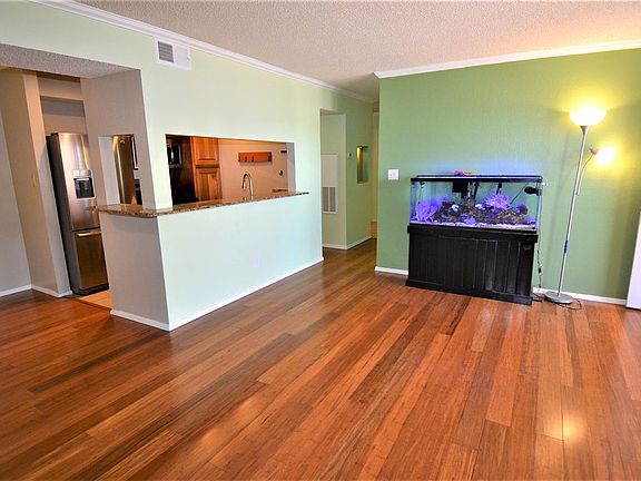 Largest first-floor unit offers uniquely great view from a roomy covered patio! 2 bedroom, 2 full baths, airy split floor plan. Remodeled in 2014 with Morningstar stranded bamboo floors, new water heater, upgraded electrical with new switches and GFI, ceiling fans, and wireless alarm (no monthly fees). Kitchen features stainless high efficiency appliances and granite counters. Bathroom toilets were replaced with water conservation units, and custom shelving added! Both bedrooms are ample size 11'x 12' and have large walk-in closets, particularly the master bedroom. Full-size washer/dryer installed and ready to go. Convenient location, move in ready and just in time to enjoy summer with refrigerated air and a pool. Reasonable HOA fees allow access to gated entry, pool, hot tub, sauna, fitness center, club house, dog area, exterior building maintenance, roof maintenance, and common area insurance. Windows wiil be replaced that are fogged or cracked.