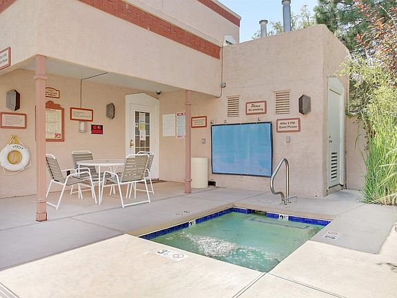 Quiet top-floor condo unit, two bedroom one bath with fireplace, private outdoor balcony. The gated Zia Vista Condominium Community offers wonderful amenities including beautiful gardens maintained weekly, club house (with a library, game tables, kitchenette, piano and the daily news). The fitness center can be found on the second floor of the main club house building. A seasonal swimming pool and year-round hot-tub in the center of the complex. Each condo unit in Zia Vista has a laundry room with washer and dryer, open concept kitchen-dining and living room and nice sized bedrooms with plenty of light and sizable walk in closets. This unit has a gorgeous tree off the balcony offering afternoon shade in the summer months and plenty of incoming sunshine in the winter!