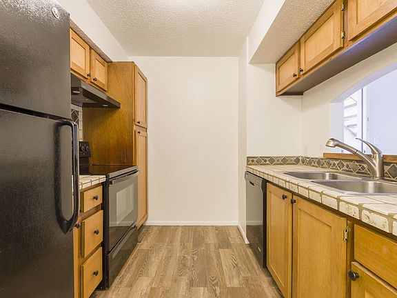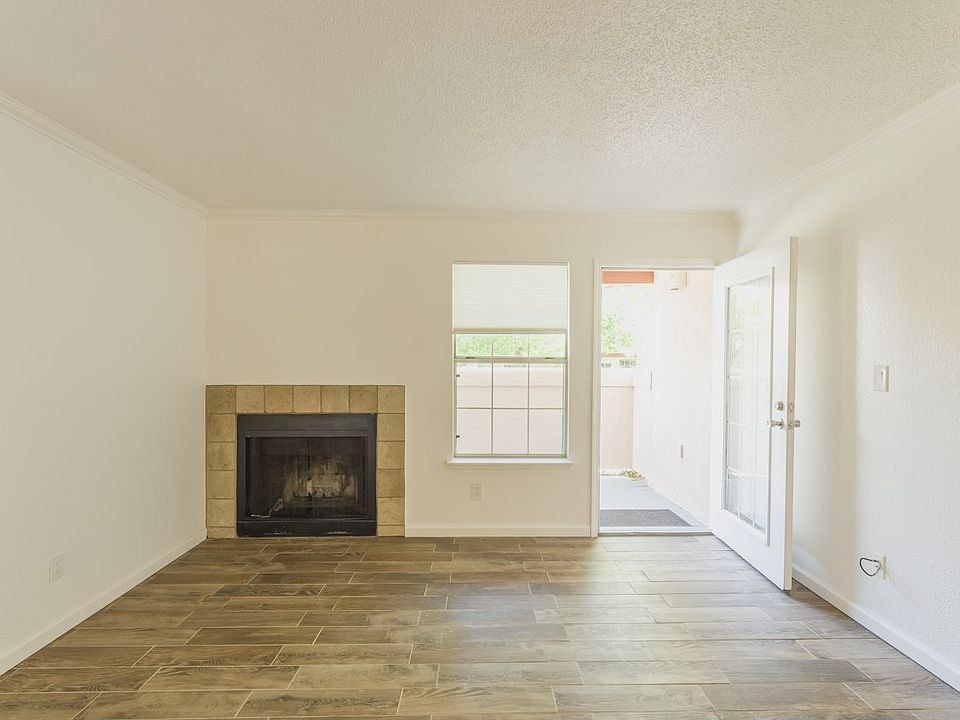 Ground floor unit located on the backside of complex. Faces interior landscaped common area. Small patio perfect for grilling or relaxing. Interior looks super: new tile floors in public areas and bedrooms, freshened with new paint, some new light fixtures and ceiling fan. Zia Vista condo amenities include tennis court, pool, workout area, hot tub and sauna. Club room available by reservation.