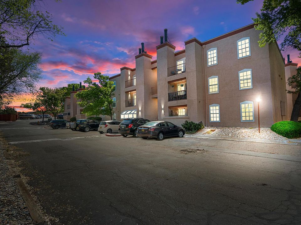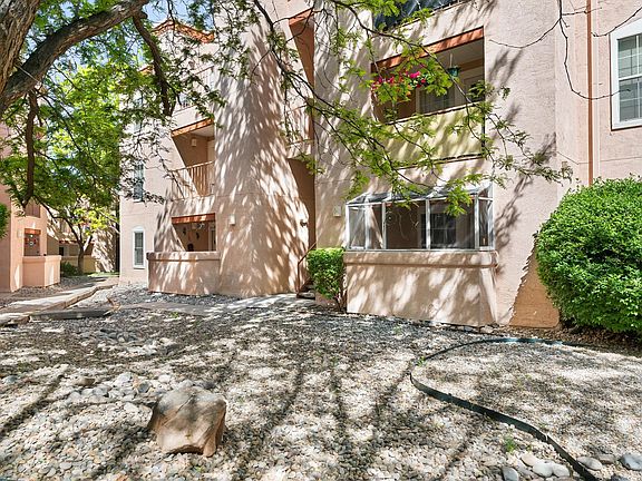 Experience the allure of this charming gem nestled in the prestigious Zia Vista gated community. This delightful ground-floor condo is situated amidst lush lawns, trees, and meticulously maintained landscaping. Residents enjoy access to a community pool, gym, clubhouse, and the beauty of the surroundings, complemented by the convenience of nearby dining and shopping options. The condo itself, featuring two bedrooms and one bathroom, epitomizes comfort and style. Comfy kitchen, wood-burning fireplace in the living area and Saltillo tile in the living and dining areas. Additionally, a private patio and the convenience of in-unit washer and dryer hookups adds to the practical appeal. This sought-after property is sure to be in high demand.