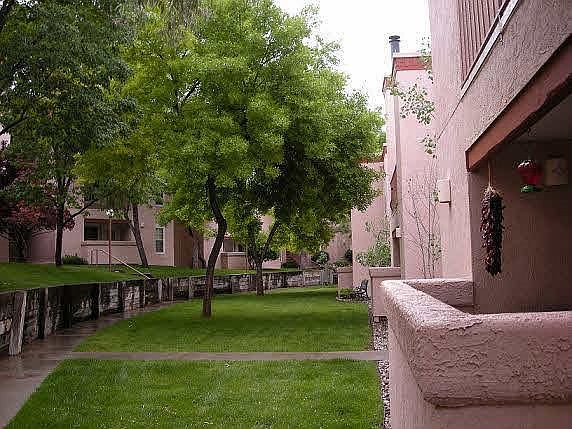 Beautiful condo on second floor with private balcony and stunning views of the arroyo/bike path..Feels like your in the country but yet minutes to shopping,and the plaza... tennis courts,club house and pool on the property.All appliances and wood burning fireplace. Priced for quick sale