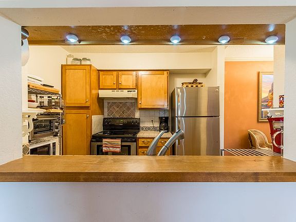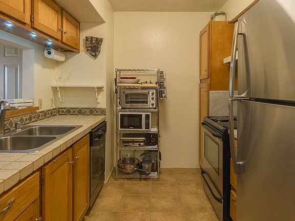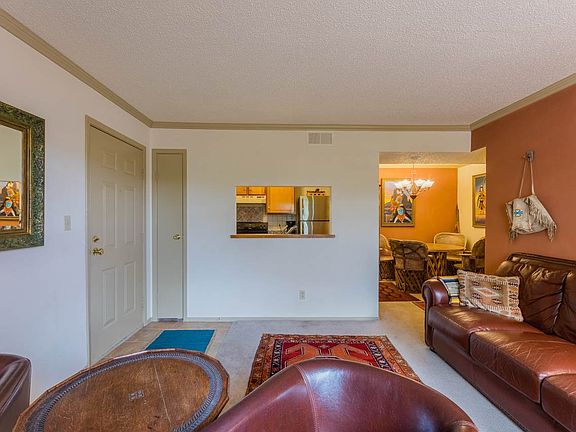 Quiet top-floor condo unit, who needs a gym membership? Two bedroom one bath with fireplace, private outdoor balcony and its own washer and dryer! Open concept kitchen-dining and living room and nice sized bedrooms with plenty of light and sizable walk in closets. The gated Zia Vista Condominium Community offers wonderful amenities including beautiful gardens maintained weekly, club house (with a library, game tables, kitchenette, piano and the daily news). The fitness center can be found on the second floor of the main club house building. A seasonal swimming pool and year-round hot-tub in the center of the complex.