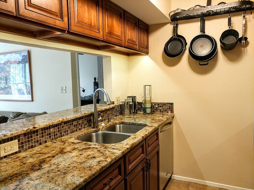 Under Contract - Backup Offers being accepted. This significantly upgraded and remodeled two-bedroom deluxe home is the largest of the Zia Vista floor plans. It's located in the back of this quiet complex, just steps from the parking lot and only a short walk from the pool and clubhouse. Zia Vista is a professionally managed, gated, non-smoking condominium community, located just minutes from Santa Fe's renown downtown Plaza. Amenities include a pool, hot tub, sauna, gym and large clubhouse with a library. This unit features many recently completed upgrades, including: A completely remodeled Kitchen with new cabinets, granite counter tops and mosaic tile glass and metal back splashes. Stainless steel appliances. Kitchenaid dishwasher and microwave/convection oven combo. Kenmore Elite refrigerator with bottom freezer and ice maker. Ceramic tile floors in the kitchen, bathrooms and entryway. New interior 6-panel doors with nickel hardware throughout. Retextured ceilings (acoustic/popcorn ceilings removed). Beautifully tiled slate and marble bathrooms. Natural slate tiled deck with Anderson storm doors and self-storing screens on both the patio and entry doors. Recently replaced vinyl double-pane windows, double-hung in bedrooms. Stacked large capacity Maytag front load washer/dryer with water leak detector and automatic shut-off valves. Sufficient storage space in the laundry room for several bicycles. Large walk-in closets in both bedrooms. Wood burning fireplace.