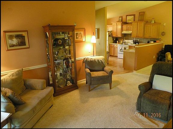 One owner townhome/duplex features open concept Liv/Din/Kitchen and vaulted ceilings. Currently used as 2bdrm plus den, the county tax info considers this a 3bdrm, simply customize to best suit your lifestyle. Lots of storage and 2 big bathrooms. Backs up to rolling farm fields with a nearby picturesque pond. Plenty of green space for kids and/or pets. Dream commute to IL or Kenosha area-close to everything with a small town feel. Handicapped accessible with wide hallways, 36in doorways, walk/roll-in shower in master bath all on one convenient level.