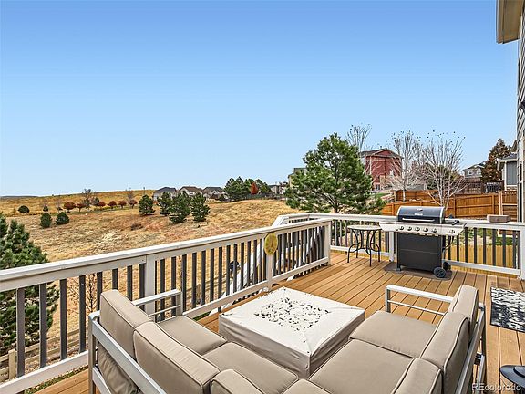 Mountain Views and wildlife views galore at this gorgeous home with walkout basement that backs to open space! Experience indoor / outdoor living at it’s finest with the deck right off this open concept kitchen and dining area with stunning unobstructed views of the mountains, hills, and gorgeous open space. Nothing can be built behind this great home. This entertainers kitchen includes stainless steel appliances, large island with counter space for 4, wood floors, white cabinets with upgraded hardware, custom tile backsplash (matching the family room fireplace) & walk in pantry. The deck leads down to a lovely yard and lower-level patio & walk-out basement! The full-sized walk-out basement has 9 ft ceilings, rough-in plumbing, and is ready for your finishing touches. Don’t miss this gorgeous private master retreat (set apart from all other bedrooms) with rare luxurious mountain views, & views of the open space to wake up to. Included is the en suite 5 piece bath with granite countertops and walk in shower, and large soaking tub. A large walk in closet completes this master retreat. All 4 bedrooms are on the second floor. There are 3 different family areas in this home, 2 downstairs, and one upstairs loft living space for all members of the home to enjoy with many different activities in one home. The new full service Aurora YMCA & walk to 2 separate pools all included with your low cost HOA dues of only $65. An unbeatable location being in the highly desirable Cherry Creek School District, Pineridge, Infinity, & Cherokee Trails. Trails galore that lead to the Aurora reservoir. Southlands Mall with restaurants, banks, libraries, bars, coffee shops, sushi, salons, barbers, dry cleaning, grocery, clothes shopping, holiday events at Southlands, summer concerts, winter ice skating rink, Farmer's Market, and more. Walk to Walmart, Home Depot, JC Penny's, Nordstrom Rack, AMC Southland Dine in 16 Movie Theater, Best Buy, Ross Dress for Less, Legend's Coffee.