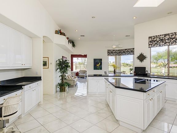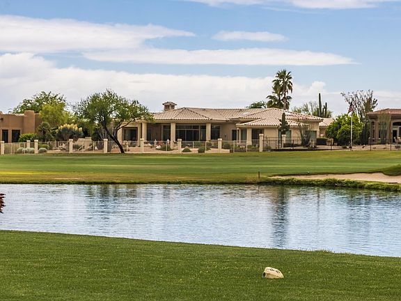 Incredible home on the Gold Coast in Rio Verde. One of a kind home 4600+ SQ. FT. of luxurious living. Stunning views of the Mazatzal Mountains & hole # 12 & 13 on the White Wing Golf course.Immense patio with water feature & pebble tech heated swimming pool & view fence. Great room features niche wall & gas fireplace, 12' ceilings, large wet bar and wall of windows w/sliders to covered patio. Formal dining rm has double coffered ceiling & built-in buffet. Kitchen has large triangular island w/granite, window overlooking the view, tons of cabinets, adjacent to breakfast room with stunning views. Den/office also has wonderful mountain views, fireplace, builtin upper & lower cabinets. Guest suite with full bath.Spacious Master Bedroom has patio access, corner fireplace & cove ceiling Master bath features 2 his and her walk in closets, snail shower w/glass block wall, twin vanities, dual water closets. Custom powder room. Huge walk in pantry & laundry room. 3 car garage with storage room, 100 gallon fat boy propane tank. Seller will provide a list of exclusions, but the piano, artwork, and sculptures are excluded plus a few pieces of furniture.