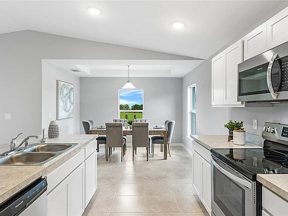 NEW CONSTRUCTION WITH WARRANTY! The Palm delivers 1,550 sq ft of living space featuring a large Great Room under a vaulted ceiling and the private covered lanai just outside the sliding glass doors, perfect for indoor-outdoor entertaining. At the heart of this open floor plan, the kitchen boasts a freestanding island and walk-in pantry next to the dining room with a tray ceiling that's filled with natural light. The primary suite features a walk-in closet and bathroom with a dual-sink vanity, shower, and extra storage in the linen closet. This home boasts hurricane-impact windows and doors, designer cabinetry in the kitchen and bathrooms, a stainless steel range, microwave, and dishwasher, and an attached two-car garage.