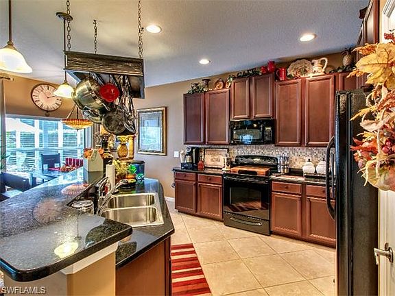 Beauty and elegance describe this 3 Bedroom + Den, 2 Bath Pool Home in the desirable gated community of Sandoval. A fabulous foyer entry greets you while opening up to a Great Room with direct view of the pool and den to the right. The Kitchen has a wonderful layout with Upgraded Kitchen Cabinets, Granite Countertops, Tile Backsplash Upgraded appliances and Island bar area that overlooks the pool area! This home is perfect for entertaining as the layout allows for easy access to the pool and under truss lanai for all your friends and family. The Guest Bedrooms are split from the rest of the home so it provides a condusive layout. Other great features are upgraded tile throughout the main living areas, carpet in the bedrooms, elegant fireplace in the living area, additional cabinet storage in the laundry, window coverings throughout, and being completely move in ready! Live the Florida Lifestyle that Sandoval has to offer - Resort Style pool, Community center, lighted basketball, volleyball and tennis courts, Exercise Room and very low HOA fees. Call me today for your private showing!
