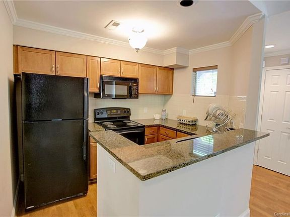 Rare opportunity for a top floor 1 bedroom in the heart of one of Charlotte's hottest and best areas. Close to Uptown, South End, Dilworth South Park, Cotswold...take your pick! This top floor location gives you the highly sought after vaulted ceilings, plus fireplace and a tree-top view that will remind you of a mountain retreat! The floor to ceiling windows and pretty picture window guarantee lots of lovely natural light. Hardwood floors run through the living area, kitchen has been updated with granite, interior colors are neutral and soothing. Washer, dryer and fridge can remain. This one is ready for you to move in! 2019-07-24