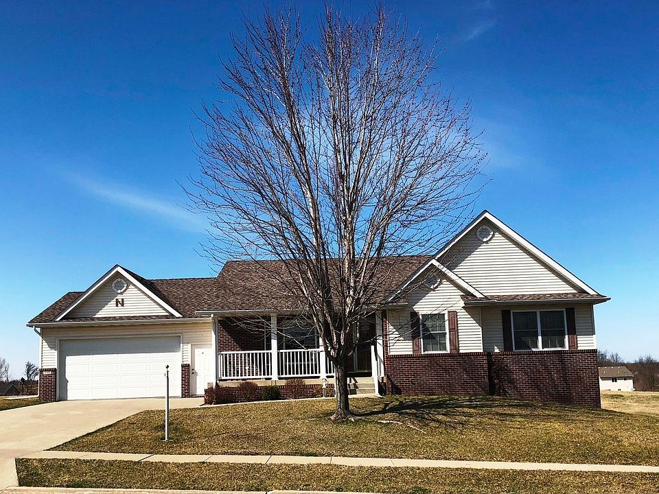 Custom built one owner south side sparkler. Definitely not a cookie cutter here A very open plan that features over 1700 sq/ft of 2X6 construction including; 3 bedrooms and 2 full baths, eat-in kitchen plus formal dining room, hardwood floors, handy drop zone and 1st floor laundry right off the huge 3 car attached garage(640sq/ft. All doors and hallways are ADA compliant plus rounded corners and Archways for a unique drywall experience. Beautiful corner lot with no neighbors on two sides offers plenty of peace and quiet. Maintenance free vinyl and brick exterior also includes a Trex deck for all your Barbeques. The walkout basement is a blank palette for future finish of your choice and is also stubbed for a 3rd bath. Seller is offering HSA Warranty for your piece of mind. 2 year monthly avg. for Mid American utilities are $106.00. Priced to sell quickly