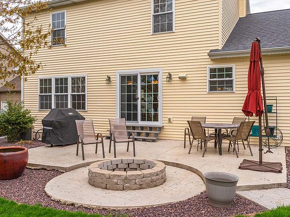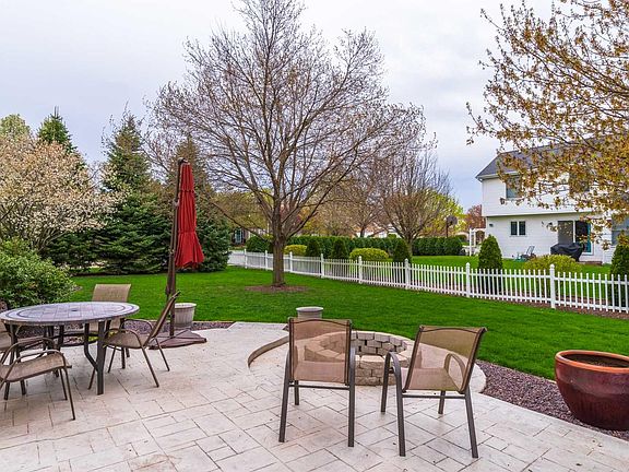 Move-in ready spacious home sits on a beautiful corner lot in Eagle Crest East with 7 bedrooms & lots of custom features! Main level has first floor master bedroom w/cathedral ceilings, family room w/built-in book shelves flanking the fireplace, formal dining room, formal living room, built-in desk in eat-in kitchen & wine rack in kitchen island. Second level has 4 spacious bedrooms. Finished basement has huge open family room, built-in bar, 2 large bedrooms (one with 21x7 closet), and full bathroom. Custom built storage room attached on north side of home - great for mower/bikes, etc. Beautiful brick patio & firepit installed in 2020, built-in audio system w/controls. Home plumbed for central vac system (no attachments). All information deemed accurate but not warranted.