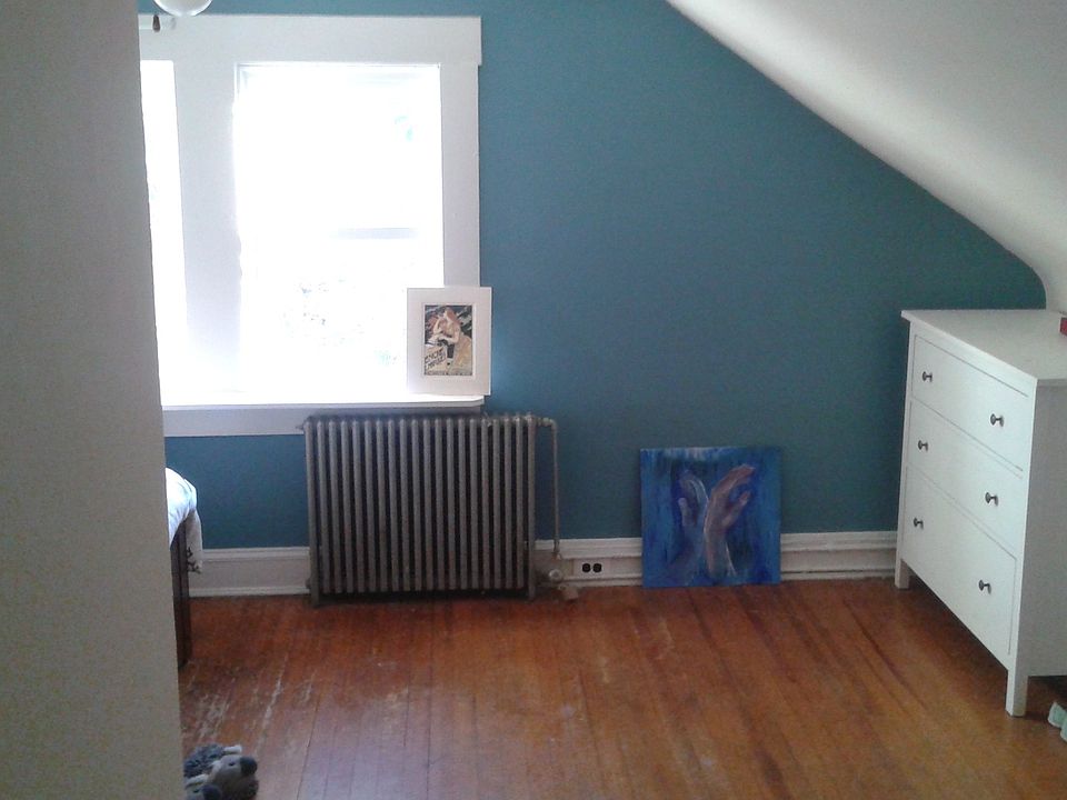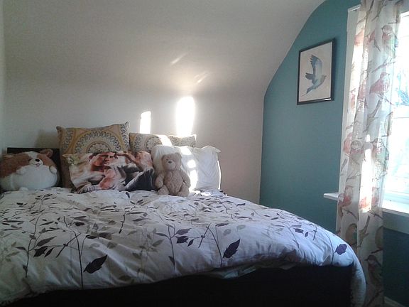 2 bedroom (or 1 bedroom with office/den) apartment is the 3rd floor of a large 1900-era home in Mount Washington. Perfect for single occupant or couple, or cozy for two roommates. Large walk-in dormer closets allow lots of storage. Brand new windows, sunny common space, small back deck with a view of a tree-filled neighborhood and the sunset. First and second floors are occupied by the owners and the renters of 2 other rooms, all professionals in their 30's. We are pet friendly. A particular feature of the space is that it is within our character-filled home. In addition to our huge basement, which includes laundry facilities, you get our generous yard, beautiful trees, storage or work space in our 3-car garage, and ample on- and off-street parking. Plus you get some pretty cool people as downstairs neighbors. In the past, we have shared our home's common areas with tenants, which is negotiable depending on our tenants' preferences. There are a lot of perks of living in a communal home that can only be adequately described in person! Utilities are divided equally between members of the household and run about $70/person in summer and $150/person for a few months Dec-Feb. Location benefits include: ** Partial view of Pimlico Racecourse (watch the horses training in the morning from our stoplight) ** Walking distance to Sinai and Mt. Washington Pediatric Hospital ** Close to Cylburn Arboretum ** Close to Washington Village ** Walking distance of two parks which are great for kids, dogs, throwing frisbees ** #27 bus stops at our corner and stops in Hampden, downtown ** 1 mile to Mount Washington light rail station