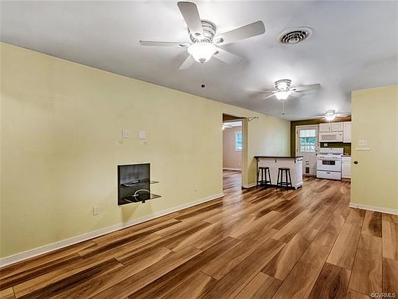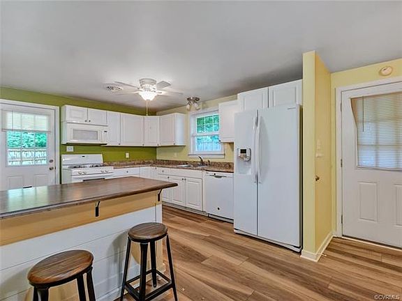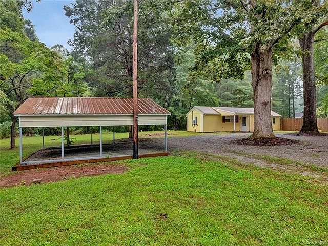 Absolute dollhouse on 1.11 acre in Powhatan! Adorable covered front porch, cement-board siding and replacement windows for easy maintenance and efficiency. Roof, heat pump and all components only 7 years old, tankless water heater, wired for generator hook up, new septic system, privacy fenced partial yard and great car-port with metal roof that can fit several cars, circular drive and attached storage shed with water (spigot) and electricity. Propane for auxiliary heat, gas cooking and dryer. New wood like luxury vinyl plank (LVP) flooring throughout and a fantastic OPEN floor plan! Kitchen is updated with new white cabinets and counters, new refrigerator and open to family/great room with ceiling fans. Renovated full bath with tub/shower, tile floor, new vanity and lighting. Large owners bedroom with nice closet complete with built in organizers in closet and ceiling fan. Bedroom 2, ceiling fan and nice closet and laundry hook ups in a separate closet (potentially room for this in attached shed area). Great yard with mature trees and meticulously maintained home!