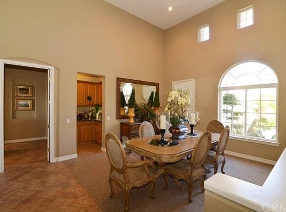 This ONE story 3560 SF home located in a prestigious Portofira Estates-a gated guard community. A custom design courtyard features a fish pond, rock waterfalls in front and backyard with luxurious slate stone thru-out, a designer pool with waterfall, built-in SPA, Bar-B-Q and two gazebos. This truly entertaining home features 4 Br. plus den or 5 Br, 5 baths, and 4 car garages plus RV parking on a oversize lot of 22,500 sq. ft. Arched entryway leads to foyer, formal living room with stone fireplace, butler's built-in wet bar between kitchen and formal dining room Cozy Family room with custom stone fireplaces & built-in sitting area Gourmet kitchen has a center island and built-in nook, walk-in pantry, area for casual dining and a separate kitchenette Custom tile floor thru out the living room, dining room, hallway and kitchen Formal dining room with cathedral ceiling, access to office/den Spacious master suite with large retreat area, master baths with sunken tub and separate shower, duel closets with walk in, patio door leads to backyard with panorama view Fourth bedroom has built-in Tatami as Japanese Zen room looking over the fish pond and water fall in the front yard A custom design courtyard with entryway walk over the fish pond, rock waterfall, and a perfect entertaining backyard with slate patio, designer pool with rock waterfall, SPA, Bar-B-Q and covered patio, two gazebos provides view seating area for party and entertainment