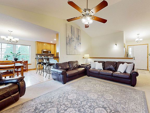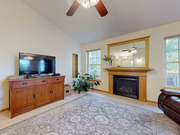 This spacious ranch is located in a family-friendly neighborhood, close to a bicycle trail, and a nice park, with quick access to highway 30. The main level has carpet, hardwood, laminate, and tile floors, a vaulted ceiling, an office/study, and features a fireplace. Also on the main level are 2 bedrooms, 2 full baths, and laundry. The kitchen features hardwood floors, laminate counters, a tiled backsplash, stainless steel appliances, and a breakfast bar. Appliances stay with the home. The primary bedroom is located on the main level and features carpet floors and a walk-in closet. The primary bedroom attached bath includes tile floors, solid surface counters, jetted tub, and one piece shower. The finished lower level features 2 bedrooms, a full bath, an office/study, a workout area, and a storage area. Heated 3-stall Garage. Tons of storage! Outside you'll find a treated wood deck and patio overlooking the yard with a wood privacy fence and mature trees. Exterior features include a great view and garden.