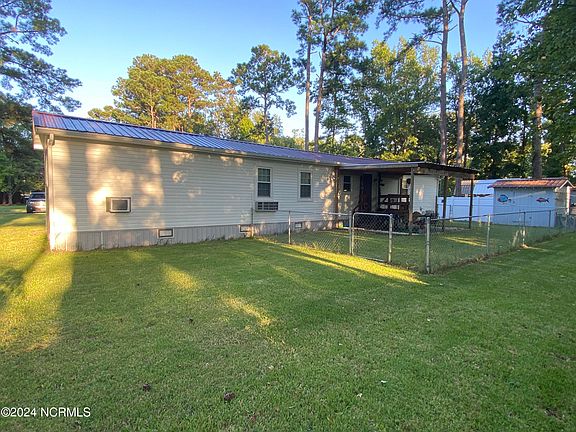This home has been remodeled down to the studs. Drywall installed and ''hotel'' AC/Heat units installed for independent room temperature control. Redesigned to 2 large bedrooms and 2 baths with laminated floors throughout for easy cleanup. Situated on 2 lots with rear covered porch, fenced yard and storage building. All major appliances are included. No HOA fees. Centrally located between Wilmington NC and Myrtle Beach SC and just minutes to Holden Beach.