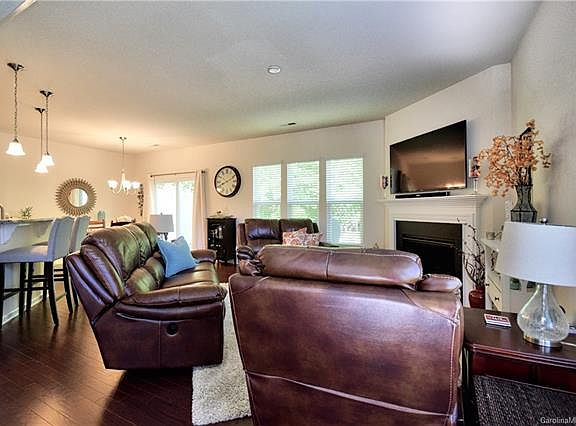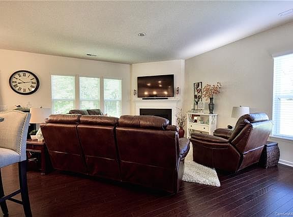 Must see end unit town home with side yard in desirable Park South Station! Stunning curb appeal and pristine landscaping! Walk in entry way with tons of natural light and hardwoods throughout main level. First floor office/flex space to work from home. Open floor plan, great room with cozy gas logs fireplace. Eat-in kitchen with granite counter tops, stainless steel appliances, breakfast bar and tile back splash. Beautiful staircase with rod iron railings lead you up to the elegant owner's retreat with tray ceiling and walk-in closet. Connecting en-suite with dual vanity and tile shower. Spacious secondary bedrooms with guest bath! Great room and owner's suite wired for ceiling fans! Peaceful backyard with fencing on both sides and patio, perfect for grilling and entertaining! Backs up to mature trees and additional outdoor rear flood lights. Great location, close to schools, restaurants and shopping!