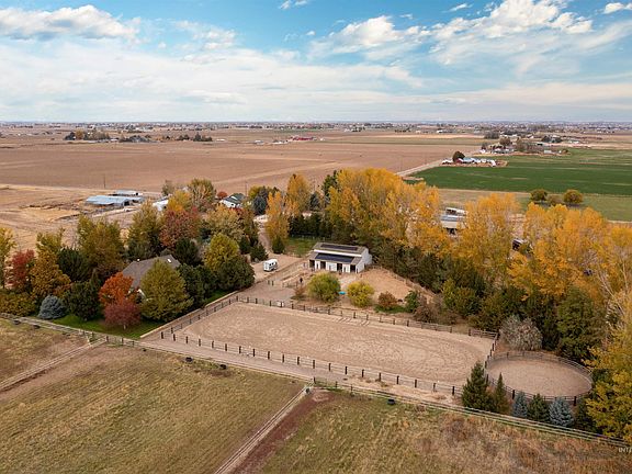 The perfect slice of Idaho Heaven right here. 10.9 acres - 8 irrigated. Meticulous 2,460 home set among beautiful, park like setting, mature trees and full landscaping at the end of the lane! Solar powered, new paint inside and out, new (3 yr) roof, new garage doors. Huge 42x50 4 stall barn with 12x25 tack and 12x25 storage. Auto waterers. Center aisle tall for hay storage. 6 flood irrigated acres divided into 3 pastures, 60' diameter round pen, 90x200 fenced arena. Auto waterers in stalls. Truly an equestrian's dream... 20 minutes to I-84. Too many extras to list all, this is a MUST SEE property.