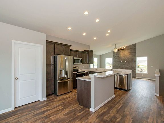 Nice ranch home in quiet neighborhood. Fresh paint and carpet throughout entire house. Vaulted ceilings and LVP flooring throughout common areas. Raised breakfast bar in kitchen along with dining area. Primary bedroom has walk-in closet and private bathroom. Beautiful stone around gas fireplace in living room. Finished basement with family room, bedroom and full bathroom. 12x12 deck off dining area. 3 car attached garage.