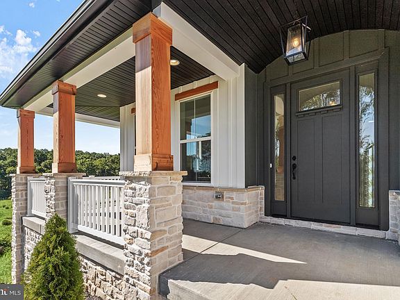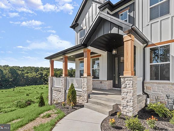 Prepare to be captivated by the charm and elegance of this brand new exceptional four-bedroom home, masterfully crafted by custom home builder Rylea Homes. With the alluring Chestertown model spanning an approximate 4,357 square feet, this modern farmhouse-style residence offers a perfect blend of spaciousness, style, and comfort. Nestled within the picturesque Gamber Overlook community, a hidden gem comprising just three custom homes, this residence promises a haven of tranquility. Situated in a private enclave and bordered by serene woods, it provides an oasis of calm while remaining conveniently connected to all your essential amenities. The journey begins as you traverse the long private drive, a prelude to the sanctuary that awaits. Imagine starting your day on the covered wrap-around porch, its wooden ceiling providing a cozy shelter as you savor your morning coffee and drink in the spectacular views that unfold before you. Step inside, and the main level welcomes you with an open-concept layout that invites natural light to flood every corner. The neutral color palette serves as a backdrop to the tasteful engineered hardwood floors, designer light fixtures, and meticulous touches that adorn every detail. The front living room beckons as a retreat for relaxation, offering a seamless connection to the inviting wrap-around porch, where you can unwind and soak in the surroundings. Hosting gatherings is a delight in the dining room, which exudes character with wainscoting, a wood ceiling adorned with exposed beams, and a butler's pantry complete with wine storage. An exquisite escape awaits in the impressive family room, where a soaring two-story ceiling creates an air of grandeur. A stone gas fireplace takes center stage, adorned with a mantel that invites warmth and comfort. As you gaze through the windows, the breathtaking woods outside become a living work of art. For culinary enthusiasts, the kitchen embodies the essence of a chef's dream. Equipped with stainless steel appliances, including a gas cooktop, built-in range, and wall oven, it is a haven for culinary creativity. The soft-close cabinets, accentuated with LED lighting underneath, provide both functionality and flair. A walk-in pantry offers ample storage, while the glass tile backsplash and quartz countertops add an element of sophistication. The oversized center island doubles as a breakfast bar, fostering casual dining, and is complemented by a cozy breakfast nook. Adjacent to the kitchen, the mudroom grants access to the three-car garage, a space thoughtfully enhanced with built-in cubbies for seamless organization. A main-level office adds a practical dimension, providing a private retreat for productive work-at-home arrangements. Journeying up the illuminated stairs, you will discover the primary bedroom suite, a true sanctuary awaiting your respite. A tray ceiling adds an element of sophistication, while an accent wall contributes a touch of character. The massive walk-in closet, equipped with soft-close ClosetMaid organizers, promises efficient storage and organization. The luxurious primary bathroom boasts a soaking tub, a dual-sink vanity, a separate water closet, and a frameless walk-in tile shower adorned with a bench and a lighted niche. A second bedroom suite offers privacy and convenience, complete with a private bathroom, a walk-in closet, and access to the attic. The upper level also hosts a laundry closet for added convenience. The third and fourth bedrooms are equally well-appointed, each featuring a walk-in closet and sharing a well-designed third full bathroom. Venturing downstairs, the lower level presents a blank canvas, awaiting your creative touch to transform it into a versatile space tailored to your unique needs and desires. This remarkable four-bedroom home is a testament to Rylea Homes' impeccable craftsmanship, and offers a fusion of modern luxury and farmhouse charm.