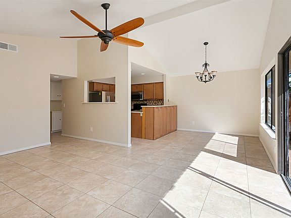 Rarely Available! Beautiful remodeled single story end unit with 3 bedrooms, 2 baths, 2 car garage and yard. Move in ready with new paint! Kitchen displays gorgeous cabinets, Corian counters, stainless steel appliances and large daily dining room. Spacious living room has vaulted ceilings. Just off the living room is a private yard/patio. Master bedroom has a large closet, laminate wood floors and ceiling fan. Conveniently located within walking distance to the movies, mall, restaurants and groceries.