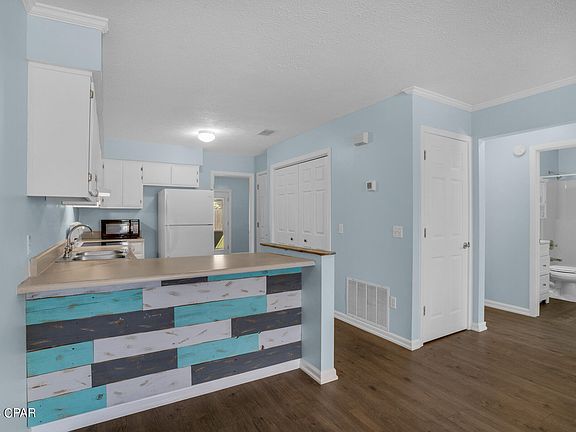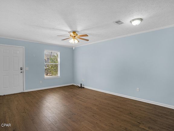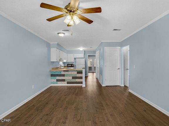 Move-in ready home blocks away from the waterfront! You'll enjoy the bright living room with tons of natural light and open to the kitchen. The kitchen offers abundant cabinet storage, a flat-top stove, and a beachy accent wall that accompanies the breakfast bar. The primary suite is located at the far end of the home and is suitable for a king-size bed and comes complete with a generous en-suite bathroom featuring a shower-tub combo, a walk-in closet as well as an attached office/sitting area. Each additional bedroom is of ample size in its own right, with a full common bath to share, and the entire home boasts neutral LVP flooring. The backyard offers a spacious screened porch, privacy fenced on all sides, and a yard building for additional storage. It is located a quick 6-minute walk to Oaks by the Bay Park and only a half mile to the shopping and dining of Downtown Panama City. Check out our full video tour on the MLS and YouTube.