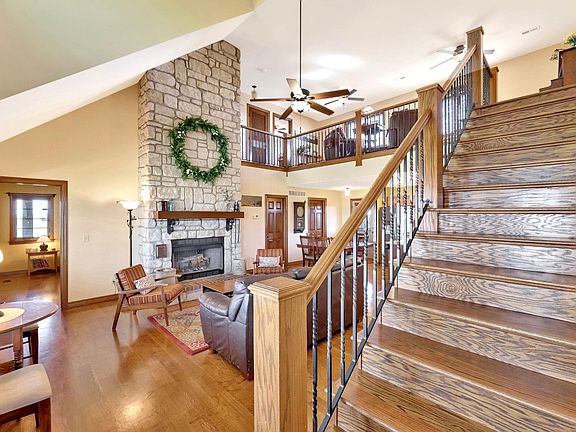 Looking for the quintessential farmhouse on a bit of acreage? Your wait is over with this sweet homestead in Peck, Kansas! Driving up, you will notice the charming curb appeal with a three-sided wrap-around porch. The back porch is 10-feet, the east porch is 8-feet, and the north porch is 6-feet...plenty of room to relax and enjoy some peaceful country living. Outside you will notice a massive 30x60 outbuilding, complete with a kitchen, a full bathroom, four garage doors, heating, and air-conditioning. A 16x30 round-top shed is just north of the outbuilding...the perfect spot to store lawn equipment, gardening supplies, or turn it into the cutest she-shed ever! This home's acreage also boasts a chicken coop, wiring for solar panels, a garden, and an orchard of fruit-bearing trees. In due season, the pear, apple, and cherry trees will be in full bloom and ripe for picking! Stepping inside this charming home, you will immediately notice the 18-foot stone fireplace that is nothing short of a masterpiece. You will also be impressed by the open floor plan, the natural light, the high cathedral ceilings, the solid 3/4" hardwood floors, wide mouldings, a wide staircase with hand-made wrought iron slats, and the stunning stained-glass window on the west side of the living room. On the main floor, you will find a fully-applianced, open kitchen with granite countertops, an island, and a walk-in pantry...and as a special treat, favorite family recipes are painted on the inside of several cabinets. The main floor also contains a cozy living room and a spacious master en-suite with the laundry room conveniently positioned next to the master closet. Upstairs you will find an expansive 25x10 loft, two bedrooms, and a full bathroom. The basement offers an opportunity for equity because this 1080 square feet of space is unfinished, but completely framed and ready to be finished to increase the value of your investment. The roof was replaced in 2019. The 3-car garage is fully-insulated. Built in 2011, this 3 bedroom/3 bath home has been LOVED through and through -- and it will truly be a TREASURE for the next owners. Schedule your private showing for this peaceful, serene, and quite lovely property today! Proudly presented by Jodi Gerken with Keller Williams Signature Partners, LLC. All information deemed reliable, but not guaranteed.