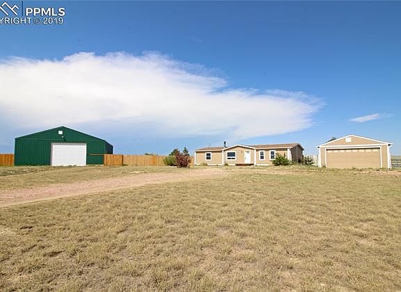 WONDERFUL PRISTINE RANCH HOME, LOCATED ON 5 ACRES, GREAT CONDITION, 3 BEDROOMS, 1 FULL BATH AND 5 PIECE MASTER BATH WITH HUGE SOAKING TUB. 2 SECONDARY BEDROOMS, BOTH WITH WALK-IN CLOSETS. AMAZING VIEWS OF PIKES PEAK AND THE FRONT RANGE. BEAUTIFUL SPACIOUS KITCHEN WITH STAINLESS STEEL APPLIANCES, INCLUDING GAS RANGE, LOADS OF STORAGE SPACE, KITCHEN PANTRY, AND BREAKFAST BAR. WOOD BURNING FIREPLACE IN LIVING ROOM, AND BUILT IN SHELVING. WALK OUT FROM DINING ROOM TO WOOD DECK, WITH DOG RUN, AND FENCING AROUND THE ENTIRE BACK OF THE PROPERTY. 2 CAR DETACHED GARAGE HAS BEEN CONVERTED TO MAN CAVE, GYM, OR SEPERATE FULLY INSULATED AND HEATED LIVING SPACE. SELLER HAS LEFT GARAGE DOOR, AND ALL PARTS AND COMPONENTS ON PROPERTY, TO BE EASILY CONVERTED BACK TO GARAGE. HUGE 40' X 40' OUT BUILDING, ON CONCRETE SLAB WITH WATER AND ELECTRICITY, CAN HOLD UP TO 12 CARS, ATV'S, TRACTORS, MAN TOYS, AND AN RV, CONVENIENTLY, WITH A 12' HIGH DOUBLE DOOR. THERE IS ALSO A SHED IN THE BACKYARD FOR EXCESS STORAGE. PRIVACY AND TRANQUILITY AWAIT YOU, IN THIS GREAT HOME ONLY 20 MINUTES FROM TOWN.