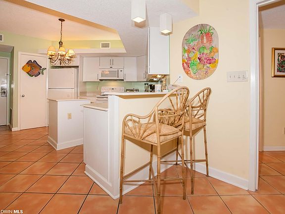 Gulf Front three-bedroom condo in the heart of Orange Beach! Amazing views of the beach and Gulf from this 15th floor condo with extra square footage. Tile flooring throughout including gorgeous plank tile in all three bedrooms. UPGRADES: 2021: Master Bedroom flooring, stand-alone icemaker; 2020: Entire condo painted; 2017: HVAC; 2018: Linen window curtains; 2015: hotwater heater, flooring in guest bedrooms, cabinets, quartz countertops in kitchen & bath; bathtubs, sinks. RENTALS: Vacasa Rental; lots of owner usage, see projected income of $56,568. RESORT AMENITIES: gated community, indoor heated pool, outdoor pool, sauna, hot tub, fitness center, tennis courts, basketball court, putting green, children's playground, BBQ area and private boardwalk for easy access to white sandy beaches of the Gulf of Mexico.