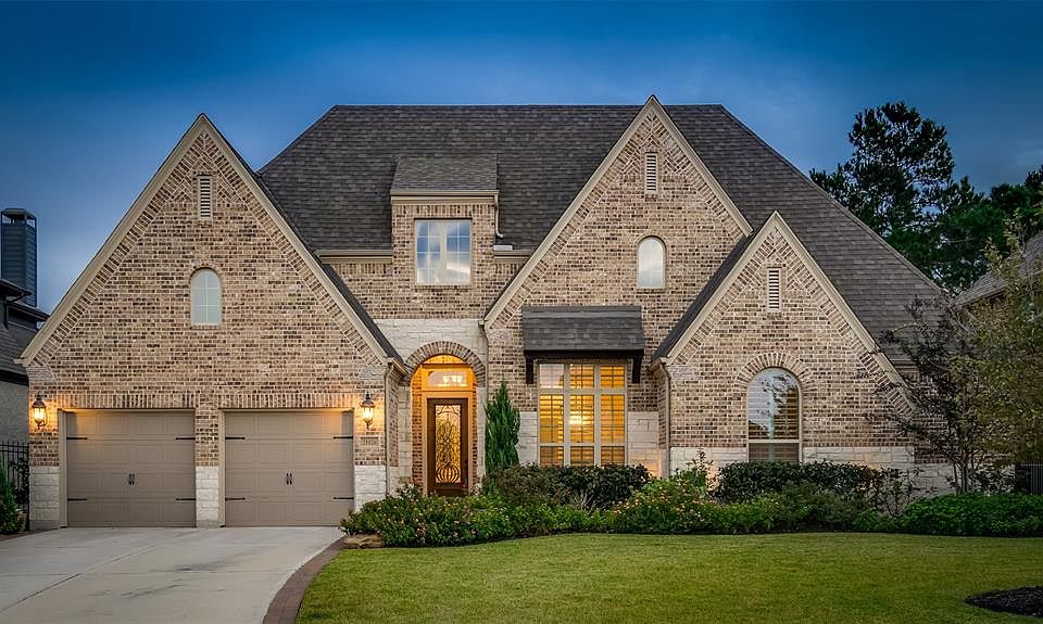 Gorgeous ONE Story with all the upgrades, no neighbors behind, and located in gated subdivision within Augusta Pines. This spacious floor plan features 4/3/3 with study, formal dining room, and gameroom. Entertain guest around the large granite island kitchen that opens to breakfast and family room with stoned fireplace and wood beams. Gourmet kitchen with Stainless appliances, double ovens, upgraded cabinetry, and butlers pantry with wine fridge. Private Master Suite with dual vanities, tub, and walk-in shower. Outside you will find a large covered patio with outdoor fireplace, outdoor kitchen, and a resort style pool with hot tub and firepits. Lots of natural light from large windows, plantation shutters, full sprinklers, lush landscaping, and mosquito mister. Golf course community, Minutes from Grand Parkway, The Woodlands, Shopping and Dining. Home has Never Flooded.