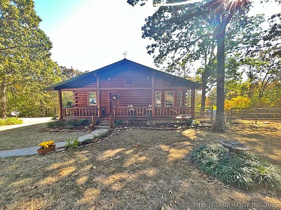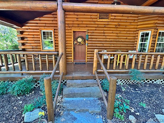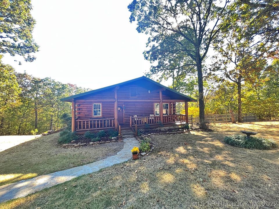 Postcard perfect!! This 2 Story Log Cabin is approx. 2417 sq. ft. (per AO), 3 bedroom, 2.5 baths, 2 car side entry garage! 1457 sq ft on main level which is where the Primary Suite is located. This Log Cabin sits off the beaten path with little traffic other than the abundant wildlife! Tons of Deer & wild turkey! The large covered front porch faces west and is where your guests will want to sit and chat (bring the rocking chairs!). The home has been extremely well maintained and boasts a Metal Roof, Granite countertops in the most charming kitchen & Pella windows! Beautiful Wood Look Tile floors, a Sun Room that is enviable with gorgeous natural light and stunning valley views. The Sunrises are breathtaking! The main floor is 1457 sq ft and the basement is fully finished and has 960 sq ft with a living room/den, office, 2 bedrooms and a full bath! The home sits on 9.95 acres that is heavily wooded and perfect for hikers, hunters and outdoor enthusiasts! The fenced garden area, outdoor firepit, and small green house are all extras that will make you feel at home!